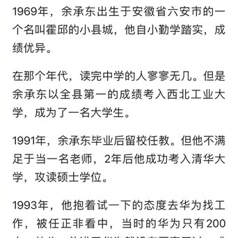 【余承东学生时期的照片,有学霸那味儿了】学生时代的余承东整个人看起来瘦瘦的,还戴着一副眼镜。如今,余承东已是华为虎将之一。1969年,余承东出生于安徽省六安市的一个名叫霍邱的小县城,他自小勤学踏实,成绩优异。在那个年代,读完中学的人寥寥无几。但是余承东以全县第一的成绩考入西北工业大学,成为了一名大学生。